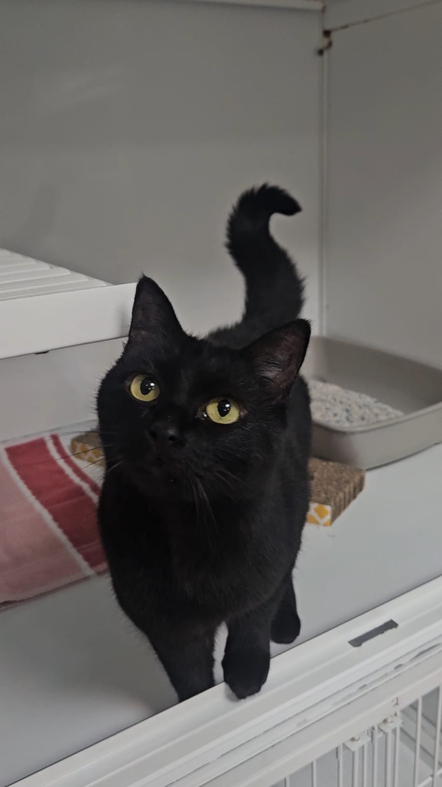 Amalyah est une superbe chatte noire de 8 ans, arrivée chez nous après le décès de son propriétaire. Elle a toujours vécu en intérieur et cherche un foyer calme où elle pourra retrouver une routine rassurante.