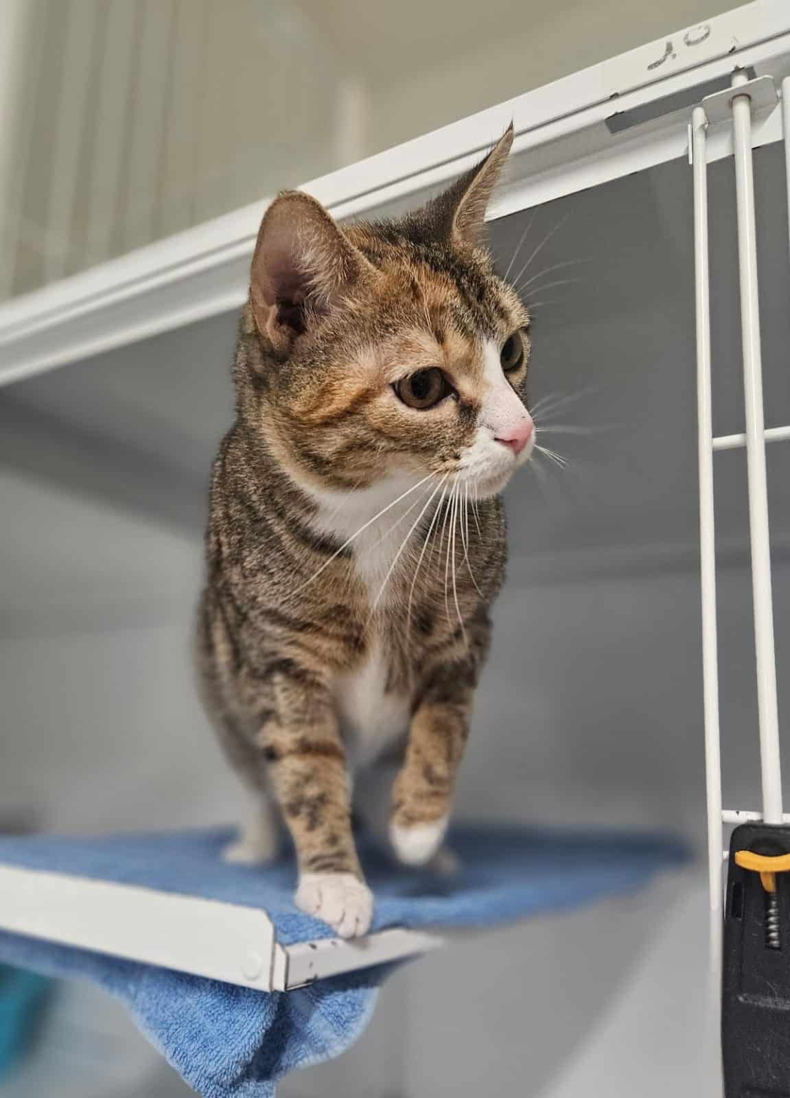Badem (5 ans), chatte tricolore au caractère bien affirmé, est plutôt indépendante mais apprécie les moments de tendresse quand elle en a envie. Elle sait ce qu’elle veut et offre de beaux câlins à ceux qui respectent son rythme.