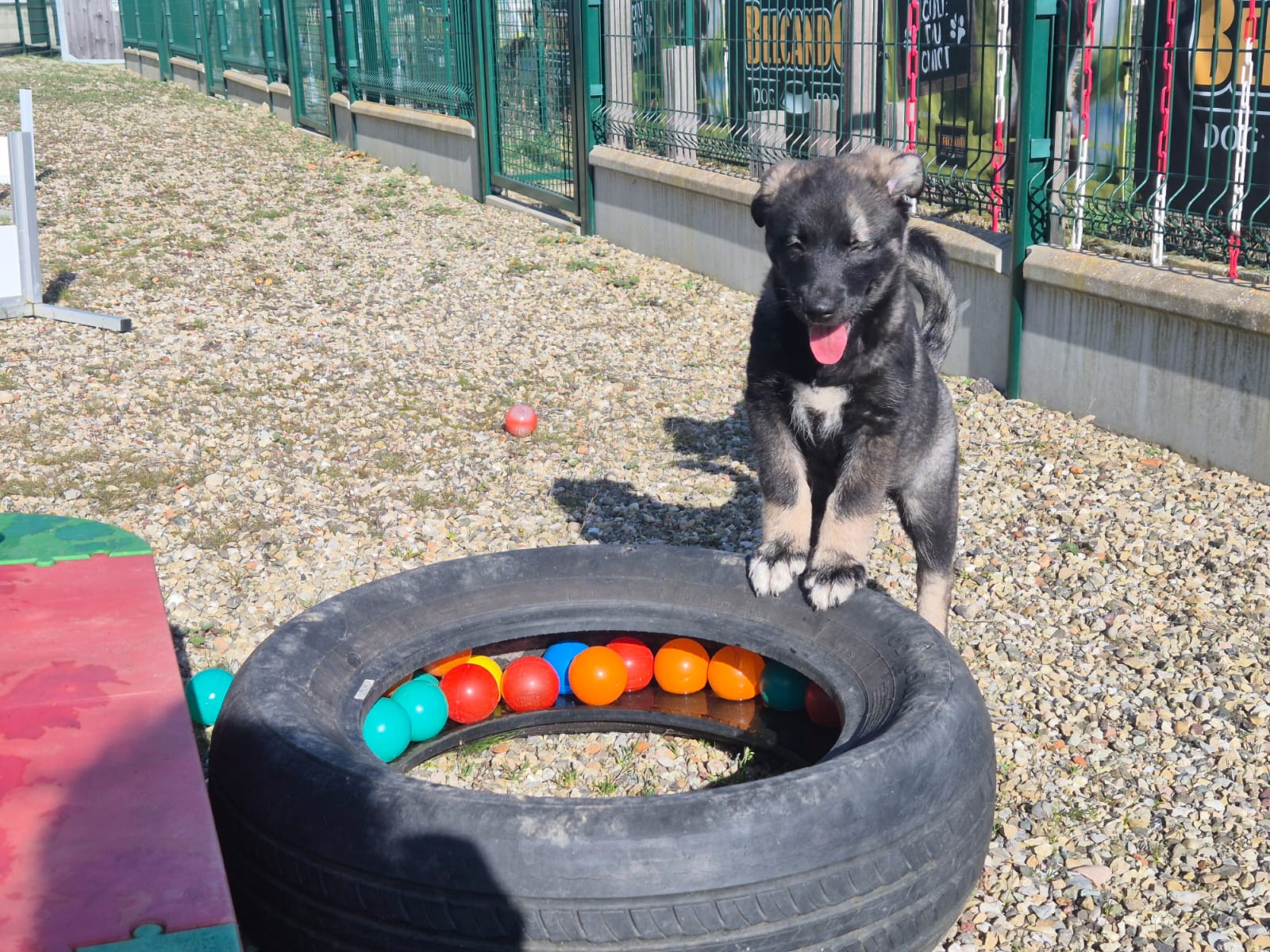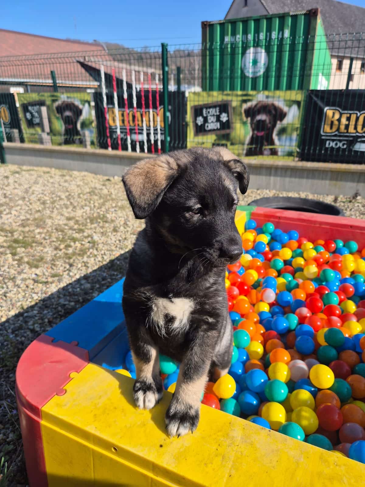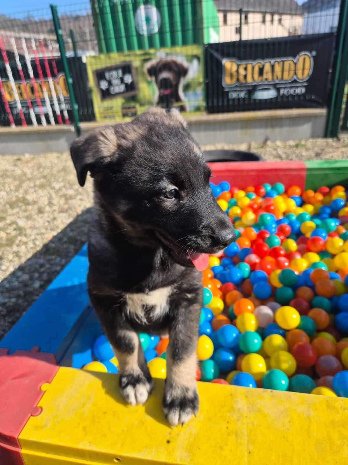 Elle adore courir partout et grimper dès qu’elle en a l’occasion. C’est la chipie de la fratrie : toujours partante pour jouer, toujours à solliciter ses frères et sœurs. Et quand eux ne sont pas disponibles, elle va proposer la partie aux chiens adultes !