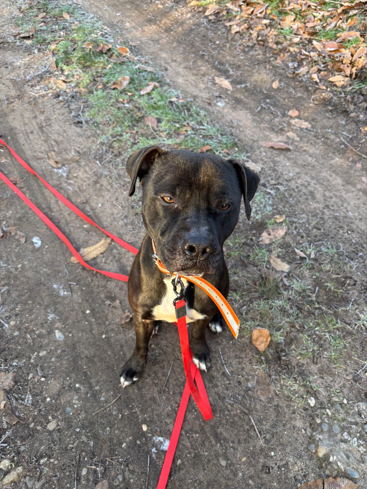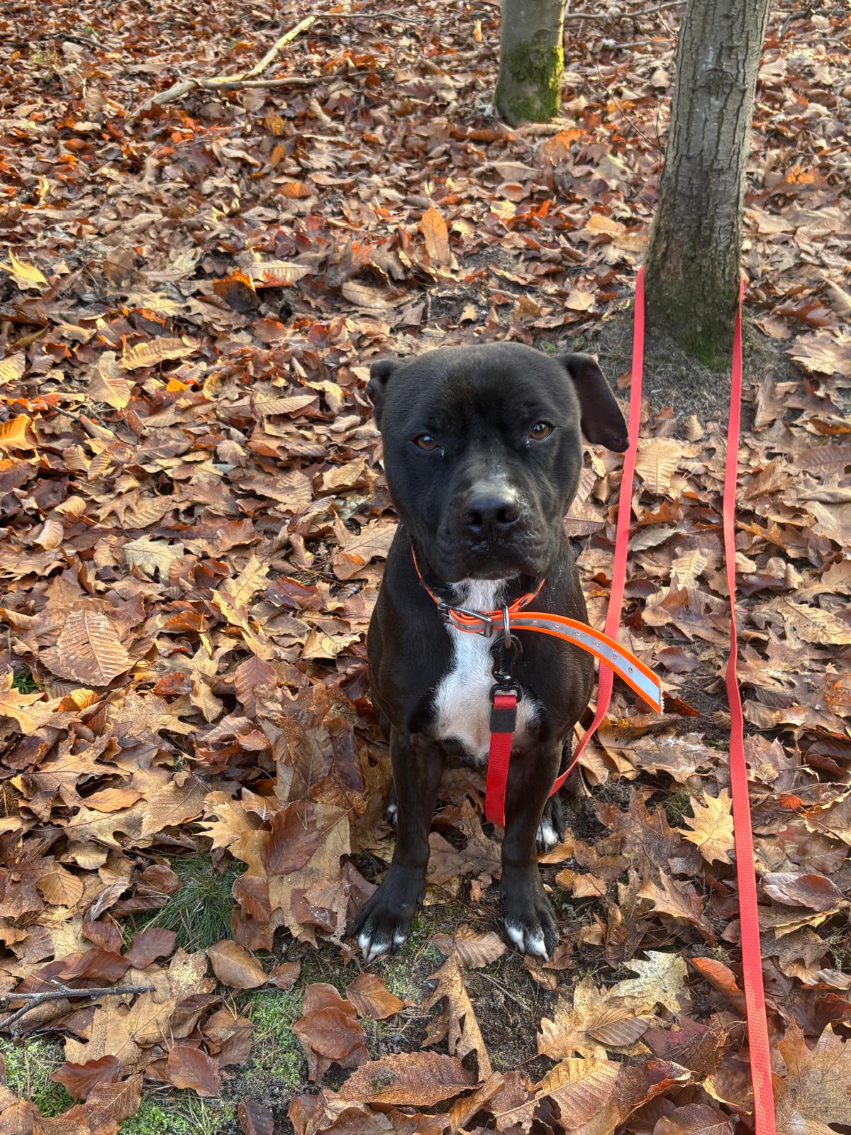 Rocco est un magnifique chien de type Staffie qui a été trouvé dans la rue et malheureusement, jamais réclamé. Cet adorable compagnon est débordant de vie et d’énergie, comme beaucoup de chiens de sa race. Il a un tempérament joyeux et aime être en compagnie des humains, cherchant souvent des câlins et de l’attention.