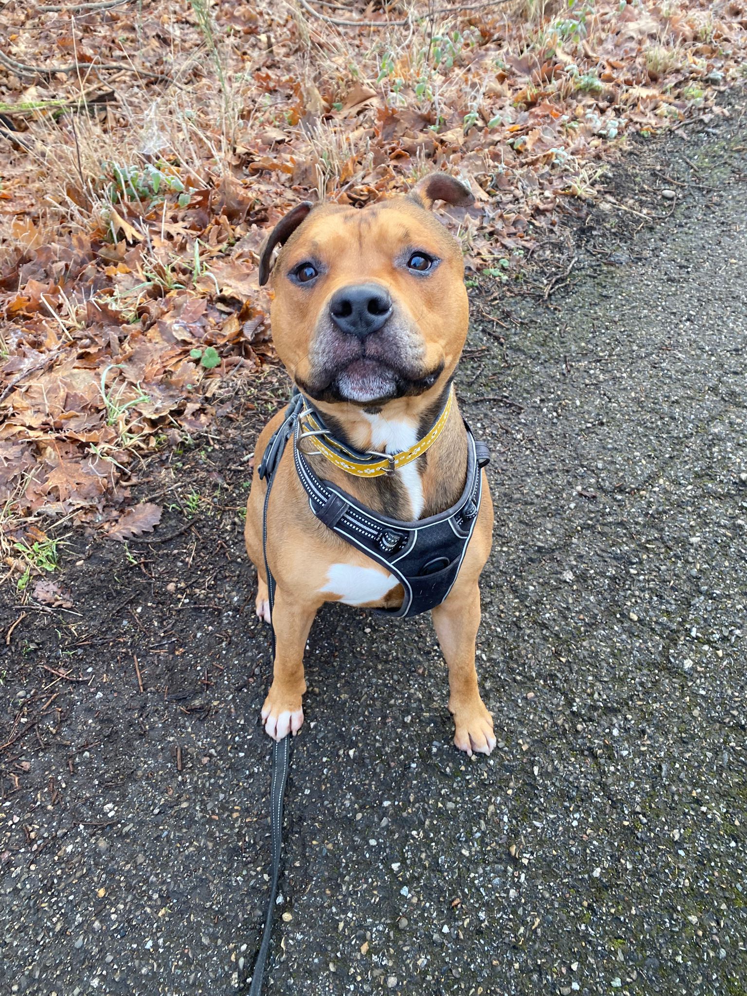 Tayson est un American Staffordshire Terrier inscrit au Livre des Origines Français (LOF), né le 20 octobre 2022. Sa jeune maîtresse, ne pouvant plus s'en occuper, nous a confié la responsabilité de Tayson.
